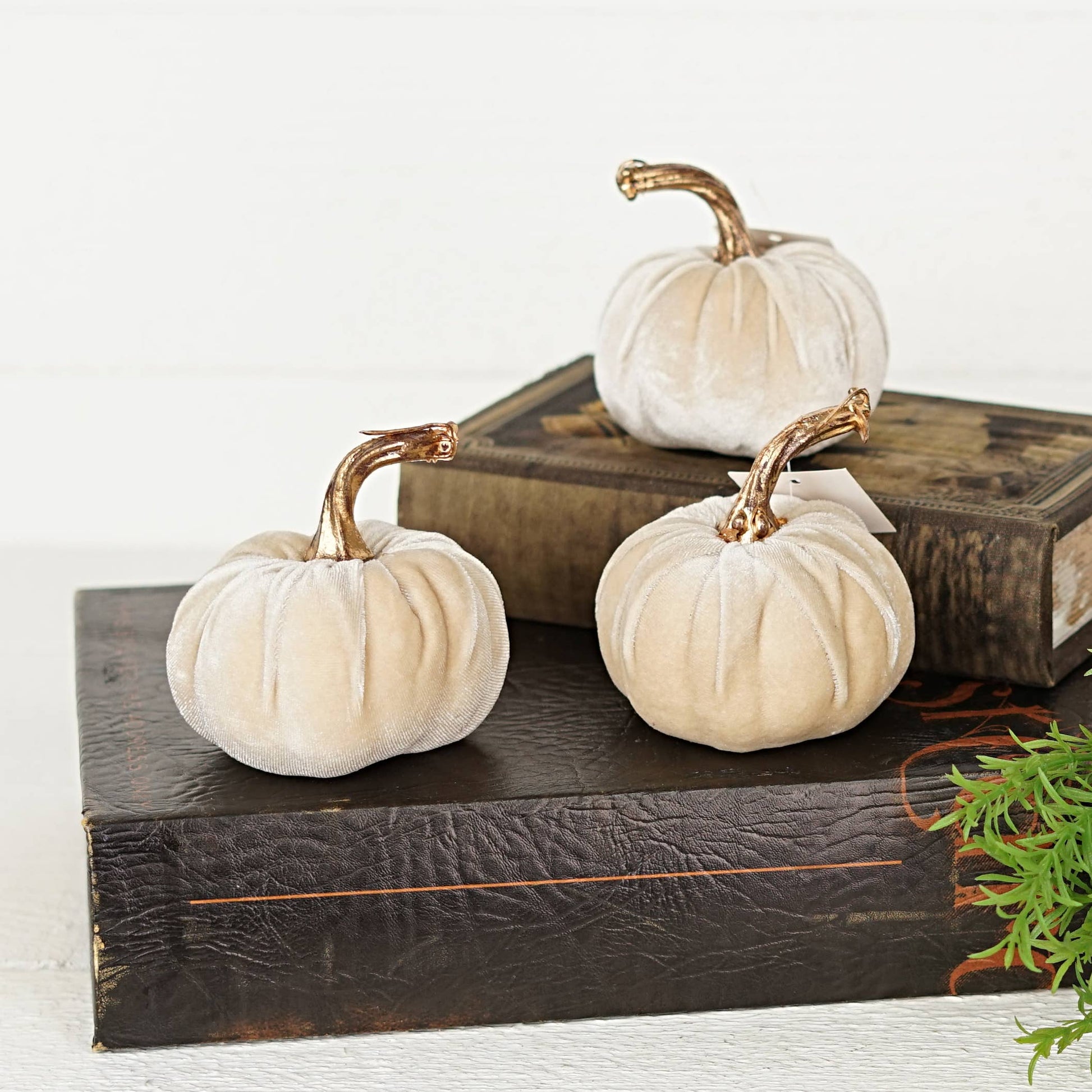 4in Velvet Pumpkin w.Golden Stem-Champaign-12/120pcs