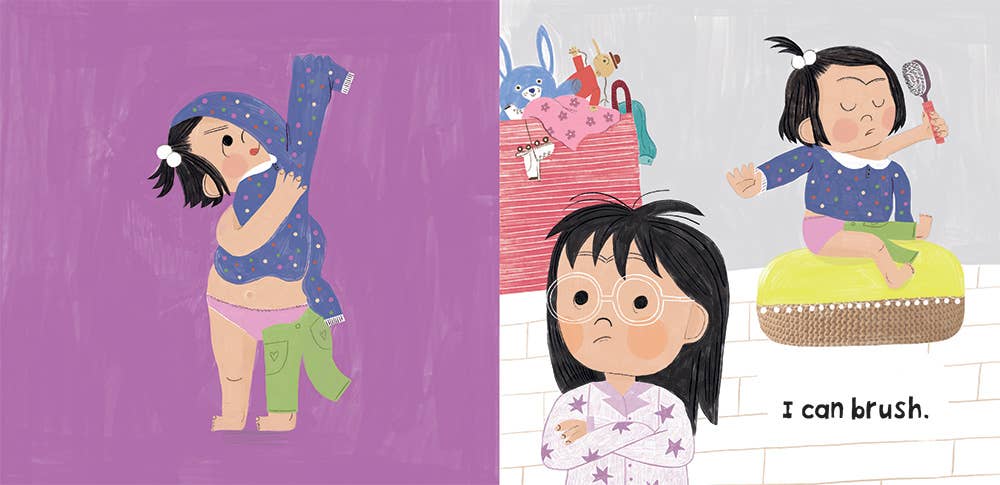 Joining the Feelings & Firsts series: a toddler humorously asserts her independence while getting ready in the morning, only to be met with one frustration after another. When she finds an opportunity to help her big sister get dressed, she accepts that they can help each other. Adults and young children alike will delight in this young child's relatable drive for autonomy. Also available in bilingual Spanish.