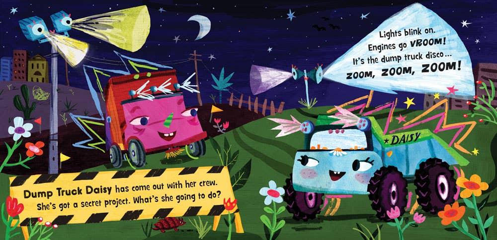 Dump Truck Daisy and her construction vehicle crew are on a secret nighttime mission — build a playground before sunrise! Detailed endnotes provide additional information about construction vehicles and inclusive playgrounds. Vibrant artwork and a catchy disco tune and animation make this a stellar choice for any child who is fascinated by construction vehicles. Includes access to vibrant audio of the song and an animated singalong of the book.