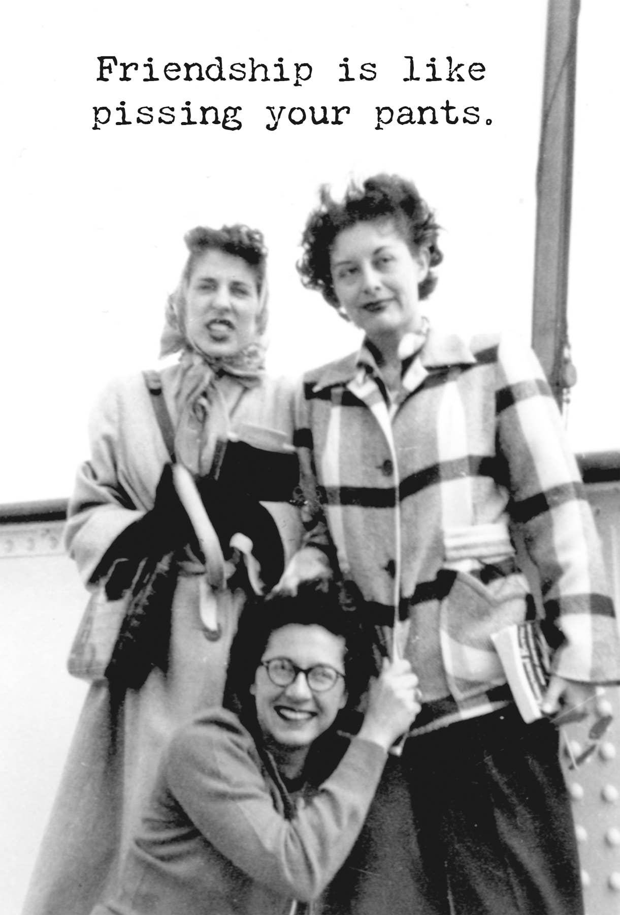 Made in the USA. Outside: Friendship is like pissing your pants.