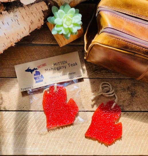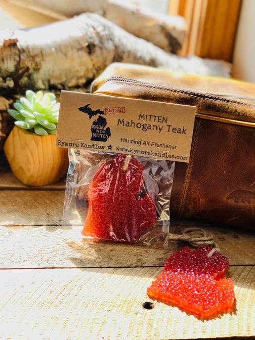 Our mitten-shaped hanging air fresheners are a best seller! They are perfect for vehicles, campers, closets, and many small spaces. They last anywhere from 4 weeks to 6 months, depending on the scent.