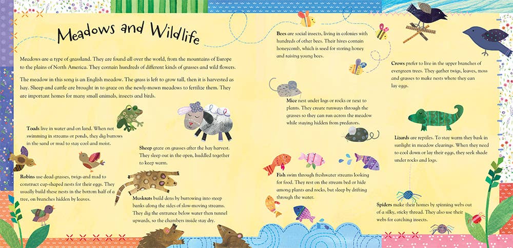 Susan Reed's catchy adaptation of this traditional English song explores all kinds of creatures who live over in the meadow. With notes on meadows and the furry mice, bumpy toads and other wildlife in the story. Also includes digital access to lively audio and animation!