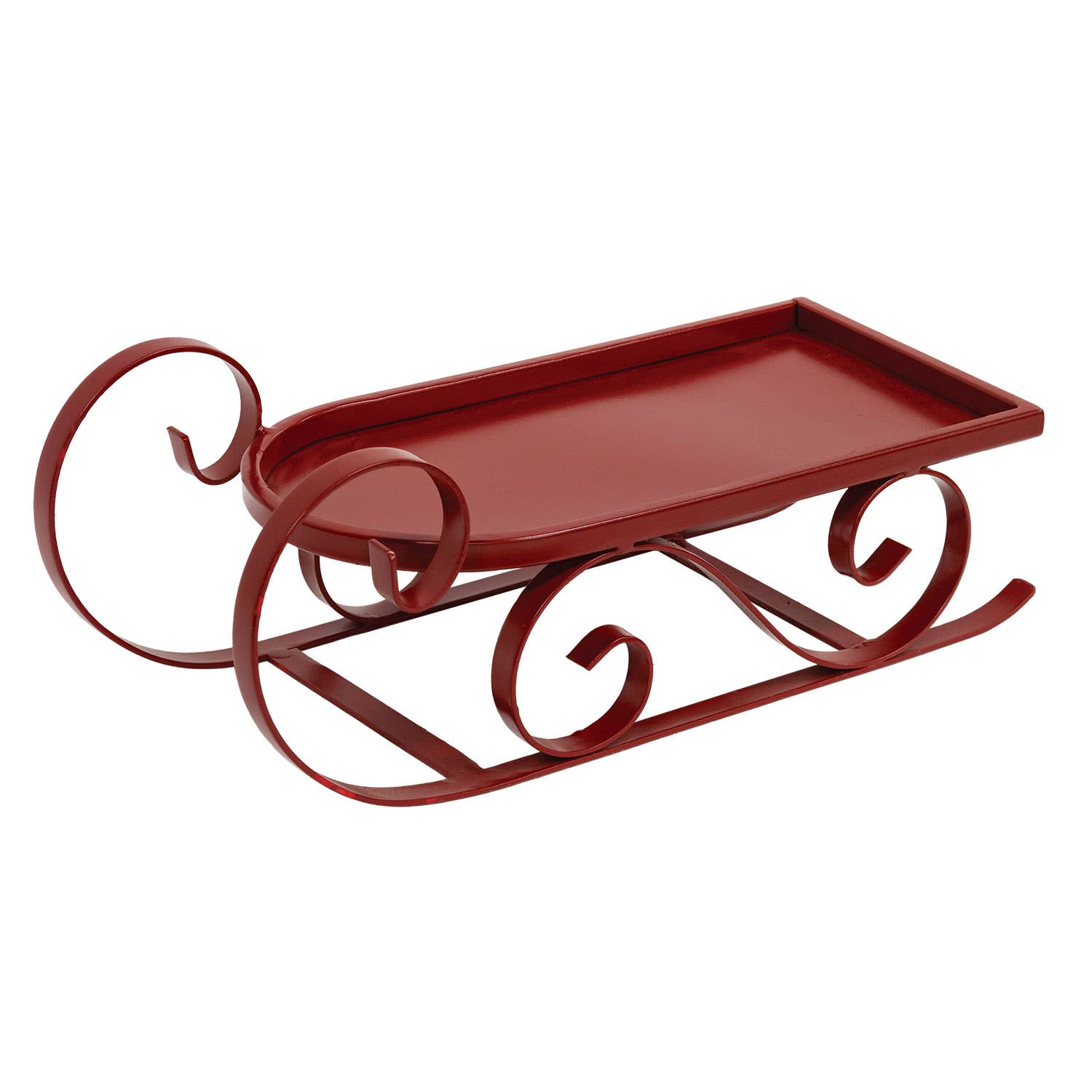 This classic red metal sled is essential for creating festive arrangements full of Christmas charm. This sturdy piece is ideal for layered displays of candles, bottle-brush pine trees, plush figures, seasonal florals and more. Measures 11.75" long by 4.5" high by 5" wide and has a glossy finish.
