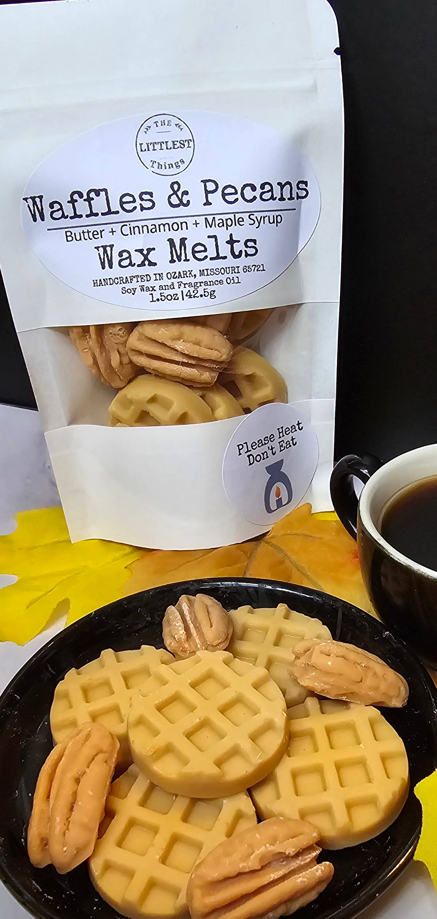 Part of the Fall Collection Sweet smell of a breakfast or dessert waffle!!! comes in a shape of pecans and waffles! This item is 1.5oz Bag